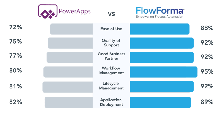 Power Apps vs FlowForma Statistics sourced from G2 Comparison Report