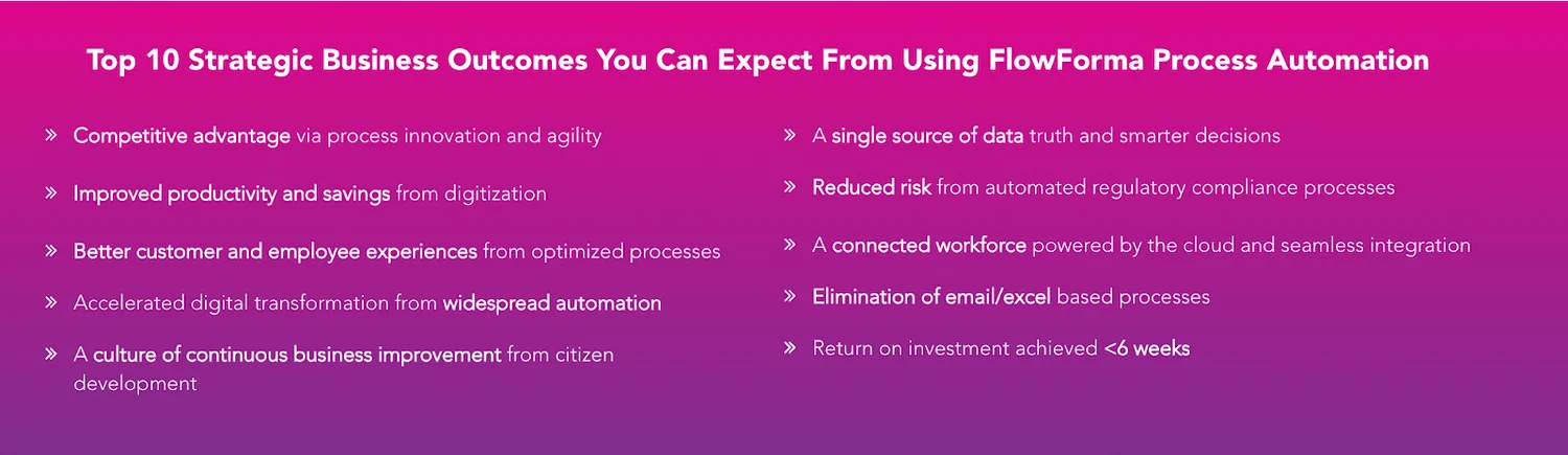 Say goodbye to operational bottlenecks, manual errors, and hidden costs. Switch to FlowForma today, and experience AI-powered, no-code process automation that accelerates digital transformation.