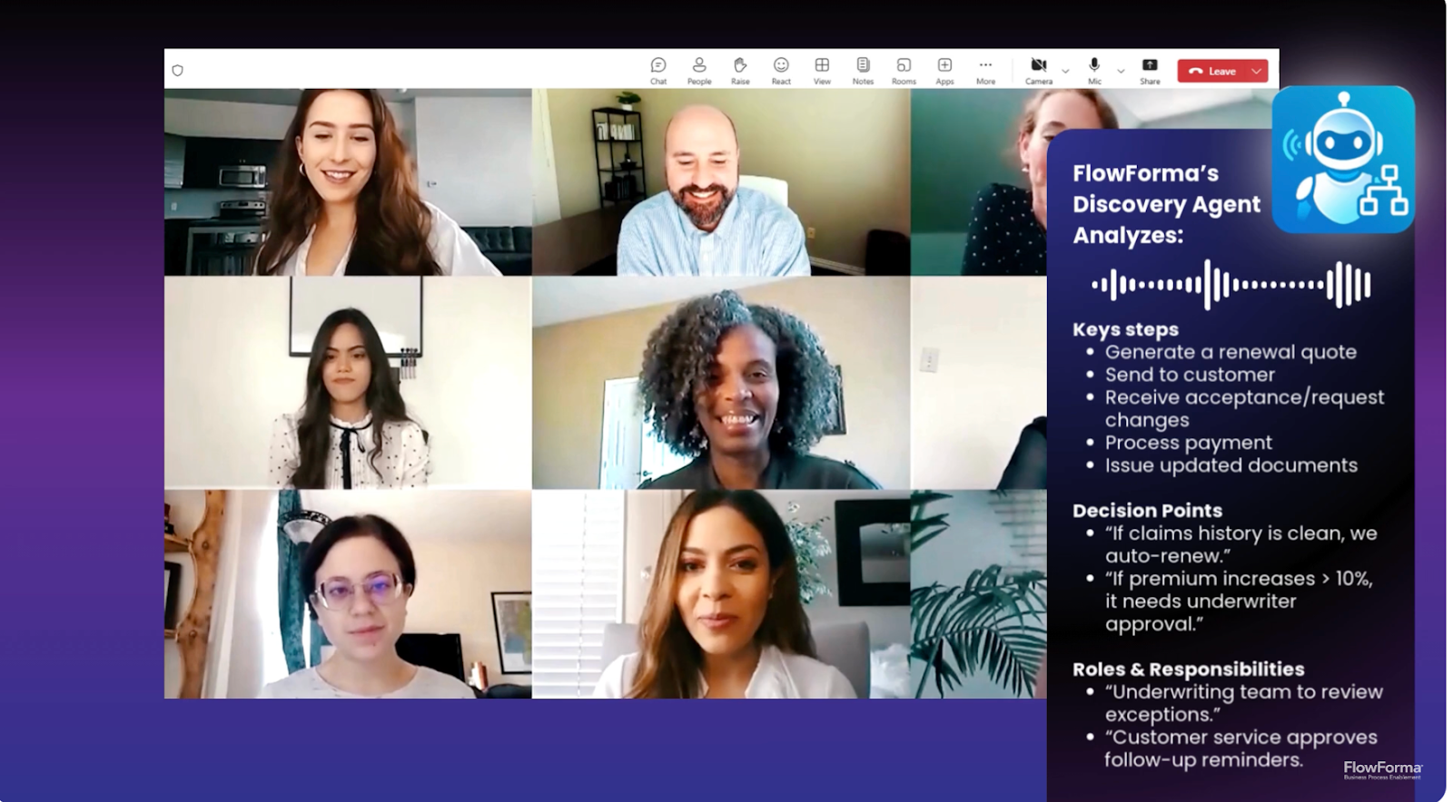 - Discovery Agent: Capture processes directly from workshops, whiteboards, or conversations. Teams can record a meeting or brainstorming session, and the agent transcribes it into a ready-to-review workflow, saving weeks of manual documentation.