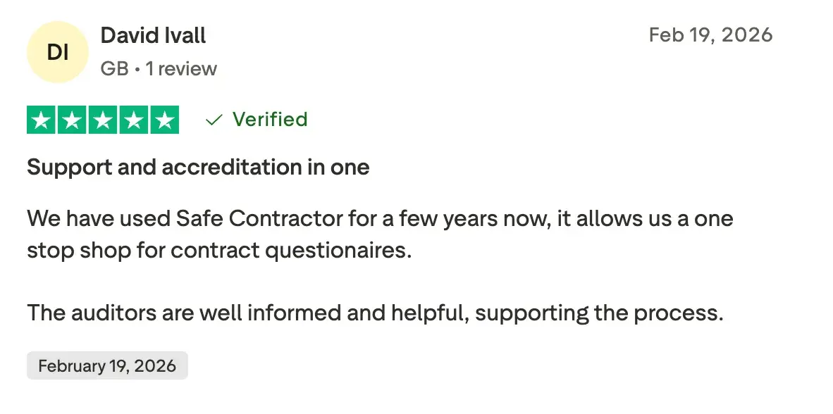 - Recognised contractor accreditation for health and safety compliance