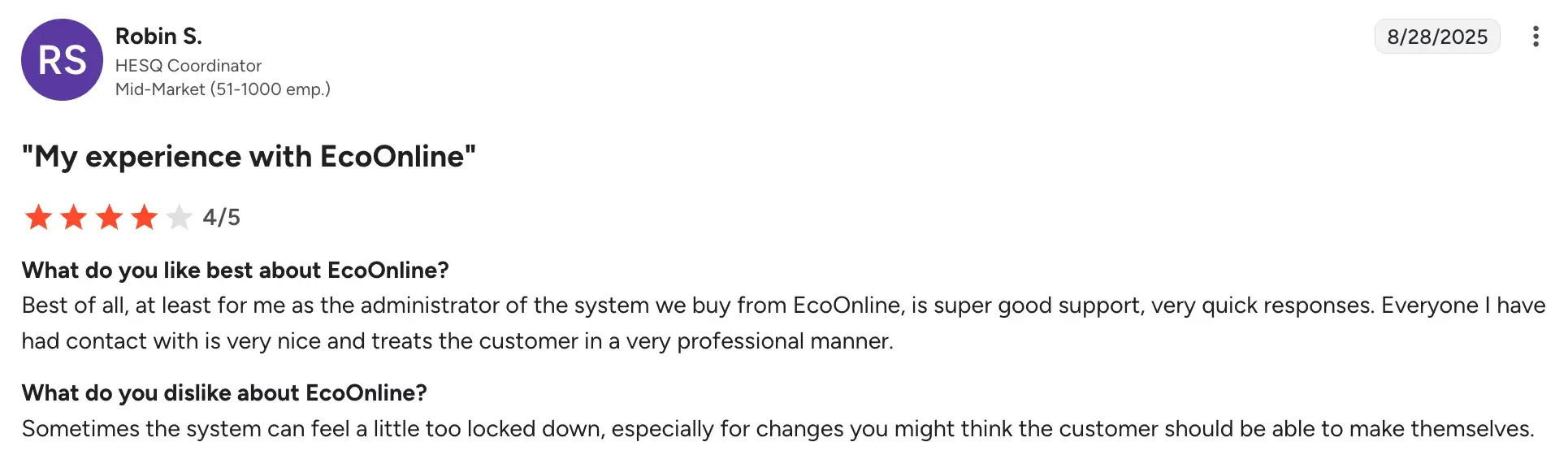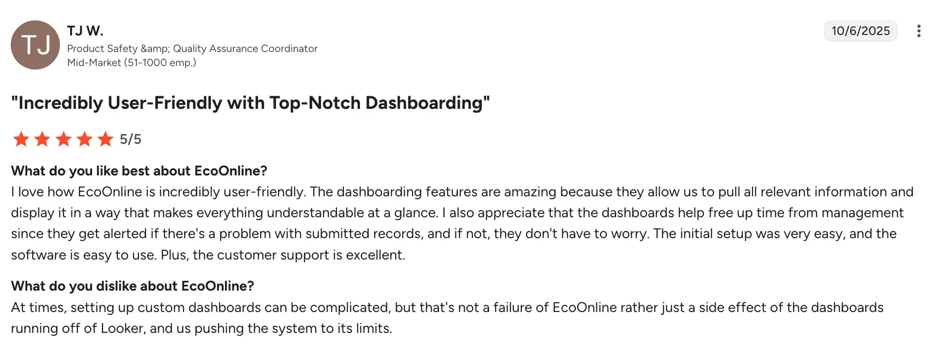 EcoOnline’s User Ratings on G2