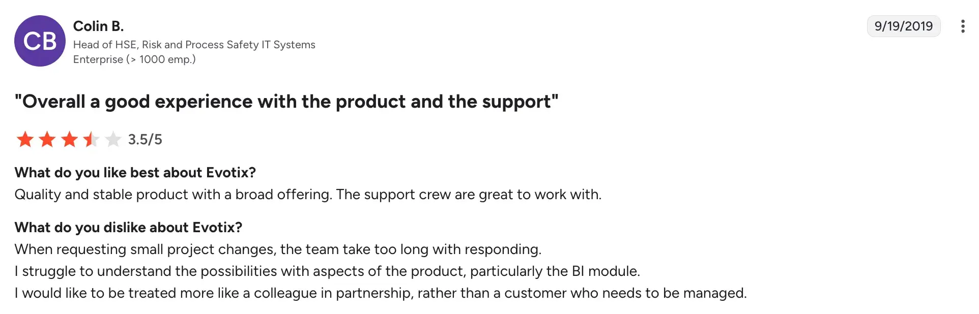 Evotix’s user ratings on G2